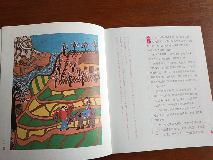 驚蟄里,“桃之夭夭,灼灼其華。春日里的桃花總是讓人想起嬌美的笑靨和年少的愛情”。讓我想起春天美麗的景色仿佛近在眼前。 春分里,讀到“燕子也是一種奇異的鳥,它只在和睦人家的房梁上筑巢”。我真的好開心啊。