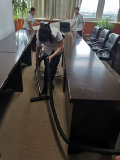 六月的天氣,像孩子的臉,剛剛還是晴空萬(wàn)里。眨眼之間便烏云密布,狂風(fēng)驟雨。為了應(yīng)對(duì)這多變的天氣,我們的丁主任總是想的比別人更周到長(zhǎng)遠(yuǎn),11樓的會(huì)議室鋪的是地毯,為了在黃梅季節(jié)到來(lái)之前,不影響地毯發(fā)霉和細(xì)菌的滋生。丁主任提前叫我們用吸塵器把地毯上的每個(gè)角落都吸干凈。我們先把桌椅搬開(kāi),然后把所有碎屑等雜物先整理清掃后再吸塵干凈,每個(gè)角落都不放過(guò)。