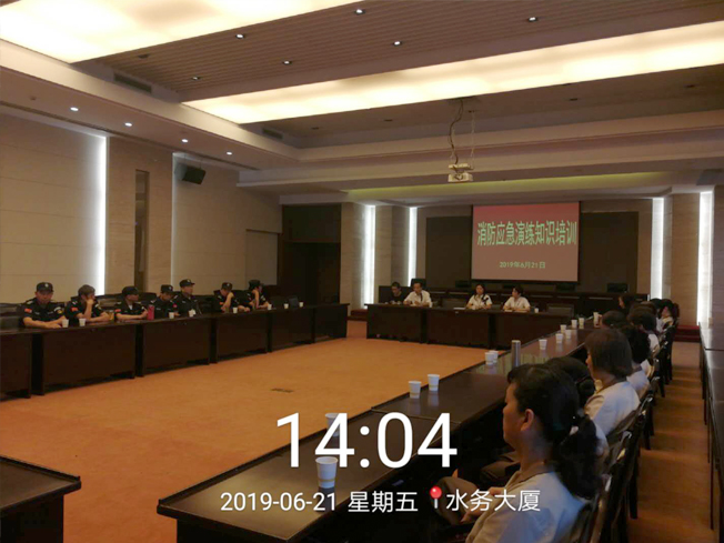 2019年6月21日,水務(wù)大廈邀請高安消防維保教育中心的教官對水務(wù)大廈全體員工進行消防知識普及講座,著重從安全基礎(chǔ)知識、防火專題、滅火專題、逃生專題四個專題進行詳細講解。為了模擬現(xiàn)場更加逼真,培訓(xùn)結(jié)束后,全員各自回到崗位,恢復(fù)正常工作,演練準備工作均在悄無聲息地布置與醞釀中,下午2.00模擬火情點然后消控室接到火情警報,當(dāng)班保安立即拉響警報,通過報警系統(tǒng)發(fā)出警報,要求在3分鐘內(nèi)迅速撤離現(xiàn)場到一樓北門口集合,保安員立即拿起滅火器、接水帶,打開消防水泵閥對初期火災(zāi)進行撲救。所有人員安全撤離到集合地點。