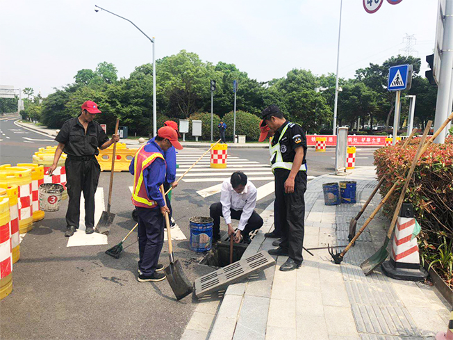 近期保安部協(xié)助保潔部進(jìn)行高鐵場(chǎng)站的蓄發(fā)停車(chē)場(chǎng)、南一、二、三、四路的陰溝清理工作,保安對(duì)需要清理的陰溝區(qū)域進(jìn)行安全圍擋,接著使用工具把需要清理的窨井蓋打開(kāi)而保潔員隨后也緊跟著把漬泥雜物取出進(jìn)行沖洗,部門(mén)之間相互配合使工作有序的進(jìn)行著。在這期間保安部對(duì)管理范圍內(nèi)的防汛重點(diǎn)區(qū)域、低洼易堵區(qū)域、地下室、等部位做為檢查重點(diǎn),對(duì)排查出來(lái)的問(wèn)題逐一研究落實(shí),并將應(yīng)急工作分布到位,做到各個(gè)區(qū)域都有直接責(zé)任人盡快予以解決,確保安全度汛。