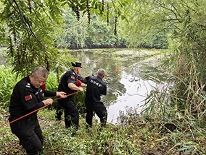 幾名隊員在岸上緊密拉著繩索,控制船只的移動方向,確保船上作業(yè)人員的安全;船上的隊員則專心清理水藻,將打撈上來的水藻通過繩索傳遞到岸邊堆放。這種協(xié)作方式不僅大大降低了作業(yè)人員在水塘中長時間作業(yè)的安全風險,還極大地提高了工作效率,減少了清理時長。
