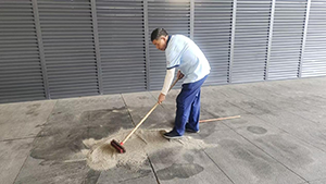 保潔班長(zhǎng)接到報(bào)告后,迅速調(diào)配保潔員攜帶沙子、拖把、水桶及趕赴現(xiàn)場(chǎng),并通知保安班長(zhǎng)及管理部。抵達(dá)現(xiàn)場(chǎng)后,保潔團(tuán)隊(duì)按照 “先控后清” 原則,先在漏油區(qū)域均勻鋪設(shè)沙子,利用沙子吸附特性快速阻斷油污擴(kuò)散,隨后用拖把將吸附油污的沙子集中清理至專用收集桶,再用清水對(duì)地面進(jìn)行二次擦拭,確保油污徹底清除。經(jīng)核查,此次漏油為施工車輸油管路輕微滲漏所致,保潔團(tuán)隊(duì)從發(fā)現(xiàn)情況到完成處置僅用時(shí) 25 分鐘,處置過程規(guī)范高效,有效避免了油污對(duì)站屋地面及環(huán)境造成污染,也保障了高鐵北站站屋通道的正常通行秩序。