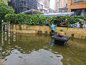 別墅區(qū)景觀池作為社區(qū)重要的生態(tài)景觀節(jié)點(diǎn),不僅承擔(dān)著美化環(huán)境的作用,更是業(yè)主休閑觀賞的重要場(chǎng)所。此次發(fā)現(xiàn)的白色垃圾主要包括塑料袋、紙巾、食品包裝等,部分垃圾漂浮在水面,部分則因水流帶動(dòng)貼附在池壁或沉于池底,給清理工作帶來(lái)了一定難度 —— 由于水池需保持正常水位以維持景觀效果和池內(nèi)水生植物生長(zhǎng),保潔人員無(wú)法直接排空水池作業(yè),只能借助專(zhuān)用工具開(kāi)展清理。