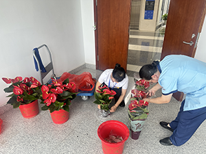秋風(fēng)送爽,綠意漸染金暉。隨著季節(jié)更替,辦公樓部分綠植失去了生機,甚是影響美觀。為持續(xù)美化辦公環(huán)境,物業(yè)開展了綠植更換行動。