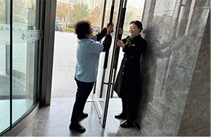 初冬的風(fēng)裹著涼意鉆進(jìn)金沙科技金融中心的玻璃門縫時(shí),物業(yè)部的三位工作人員正捧著一卷棕褐色的毛絨門把套,腳步輕而快地穿梭在大廳與電梯廳之間。