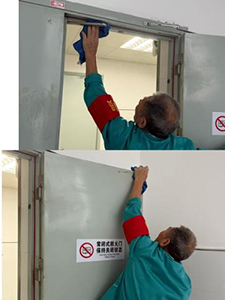 防火門作為醫(yī)院消防安全的重要設(shè)施,其正常使用和清潔維護(hù)至關(guān)重要。然而,由于日常人流量大,防火門的門框和門頂容易積累灰塵、污漬,不僅影響美觀,還可能影響防火門的正常開啟和關(guān)閉。為了消除這一安全隱患,物業(yè)保潔團(tuán)隊(duì)迅速行動(dòng)起來。
