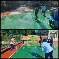 經(jīng)過數(shù)小時清洗,原本布滿塵垢的籃球場煥然一新,地面潔凈鮮亮,防滑效果顯著提升。甲方運(yùn)動會負(fù)責(zé)人實地查看后連連稱贊:“物業(yè)提前籌備、細(xì)致服務(wù),讓我們對賽事更有信心!