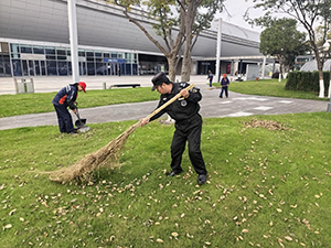 視察前夕,保潔部便啟動了“全域清潔”專項計劃:針對北廣場綠化帶、步行通道、候車區(qū)域等重點區(qū)域,增派人手開展落葉清掃、地面沖洗、設施擦拭等工作。當天,保潔人員著重對廣場草坪內(nèi)的落葉、步道縫隙的雜物進行 “拉網(wǎng)式” 清理 —— 有的俯身清掃草坪角落的殘葉,有的配合清運堆積垃圾,連座椅、欄桿等細節(jié)處也逐一擦拭除塵。現(xiàn)場可見,安保人員也主動加入清潔隊伍,與保潔人員協(xié)同配合,確保每一處區(qū)域都干凈整潔。