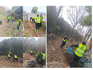 在清理現(xiàn)場,保安人員充分發(fā)揮其體力優(yōu)勢和組織協(xié)調(diào)能力。他們把大大小小的枯枝搬運上三輪車,而保潔人員則拿著掃帚、垃圾袋等工具,緊隨其后,將枯葉枯草進行細致的清掃和收集。他們分工明確,配合默契,不放過任何一個角落。有的保潔人員蹲下來,仔細地將角落里的枯草枯葉裝入垃圾袋;有的則將裝滿枯葉的垃圾袋及已清理上車的枯枝及時運送到指定的垃圾存放點。