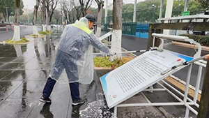 今日,一場(chǎng)及時(shí)雨降臨,為清潔工作提供了絕佳的契機(jī)。保潔主管迅速行動(dòng),精心組織了一場(chǎng)標(biāo)識(shí)牌清潔行動(dòng)。保潔團(tuán)隊(duì)分工明確、配合默契,形成了一條高效的清潔流水線。最前面的保潔人員手持拖把和塵推,先對(duì)標(biāo)識(shí)牌進(jìn)行初步清掃,將表面的浮塵和雜物清理干凈,為后續(xù)的深度清潔做好鋪墊。緊接著,第二位保潔人員登場(chǎng),他們拿著刮刀,小心翼翼地將標(biāo)識(shí)牌上殘留的水分刮干凈,避免水分殘留導(dǎo)致水漬形成,影響清潔效果。這一步需要十足的耐心和細(xì)心,每一個(gè)角落都不放過。最后,第三位保潔人員用柔軟的抹布仔細(xì)擦拭,不放過任何一處細(xì)微的污漬,讓標(biāo)志牌恢復(fù)原本的光彩。