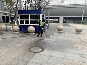 作業(yè)過程中,小組嚴(yán)格遵循 “精細(xì)化、無死角” 原則,針對積塵圈的邊緣縫隙、地磚拼接處等易忽略部位,逐一進(jìn)行高壓噴淋清潔。經(jīng)過 1 小時的連續(xù)作業(yè),北廣場 6 處石球遺留積塵圈全部清理完畢,地面恢復(fù)了原有的整潔質(zhì)感,與周邊環(huán)境形成統(tǒng)一的美觀效果。