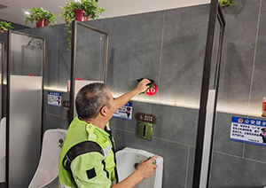 男廁所人流量大,保潔工作常“反復(fù)歸零”。早高峰時,他剛拖完地,轉(zhuǎn)身就有人踩出腳;剛擦凈洗手臺,又濺上了水漬;廁所上一位顧客剛出來,還沒來得及去清理沖洗,就又進來了下一位。但姜林從不多言,只是拿著拖把、抹布跟在人流后,一遍遍重復(fù)清潔動作,日均彎腰擦拭超300次,清運垃圾近20袋。